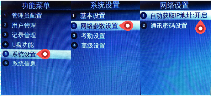 2. 点击“系统设置-网络参数设置”,设置“自动获取IP地址”状态为:“开启”;